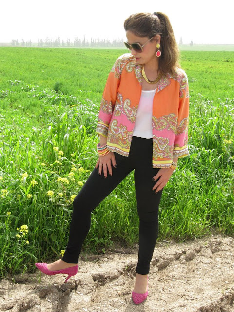 לא אוכל לסיים את הפוסט הצבעוני הזה מבלי להתייחס לתכשיטים המדהימים שענדתי בשתי התמונות הראשונות, שהינם פרי עיצובה של המעצבת שגית רביבו! לצערי, אני נאלצת להודות שלא כולם שלי (חלקם של אחותי עתליה, שועלת אופנה אמיתית לא פחות ממני) אבל בכוונתי "ליישר קו" בהקדם וכבר חמדתי לעצמי כמה וכמה תכשיטים חדשים של המעצבת המוכשרת.