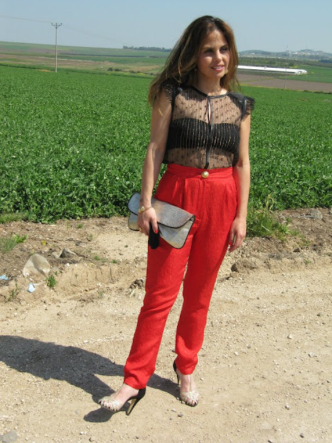 חולצה/RONALINA, מכנס/RONALINA, נעליים/RENUAR, קלאץ'/MANGO עפולה, עגילים וצמיד/שלי דהרי, טבעות/yanga קניון עזריאלי.