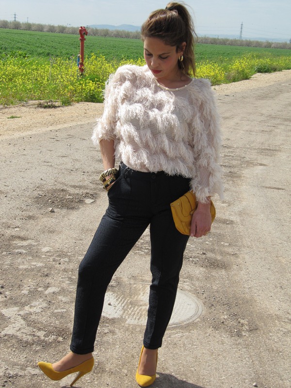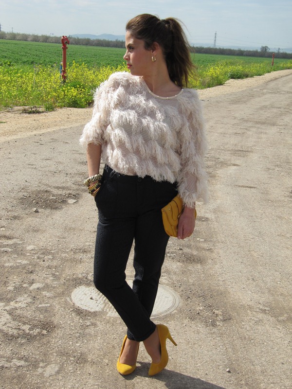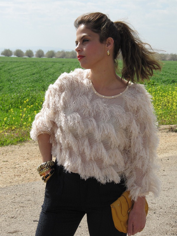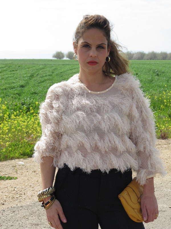 מכנס/ ZARA, סריג/ cala, צמידים/ALDO, תיק/H&M, נעליים/ TWENTYFOURSEVEN.
