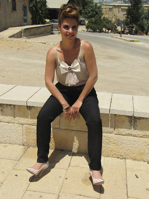 גופיה/ יפית אוחיון, מכנס/ KOOI עפולה, נעליים/ ZARA, תיק/ MANGO, צמיד וטבעת אבן שחורה/ שלי דהרי.