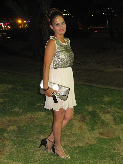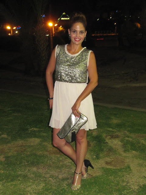 חופשת סוף השבוע שעבר באילת אפשרה לי לאוורר את שמלות הערב (המעטות) שיש באמתחתי ואשר בימים כתיקונם אינן מרבות לצאת לבילויים ליליים (בדיוק כמוני...). אחת השמלות שנמצאה מתאימה בדיוק לאירוע החגיגי של יציאת ערב, היא זו המתועדת בתמונות וכן, גם אותה רכשתי לעצמי באחת ממכירות האופנה הביתיות שערכתי לאחרונה.